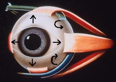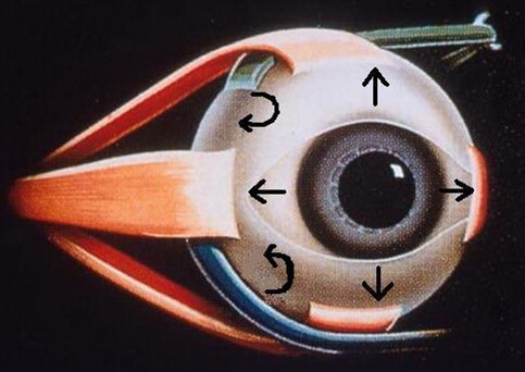 Mişcările ochiului sunt asigurate de șase mușchi pentru fiecare ochi: